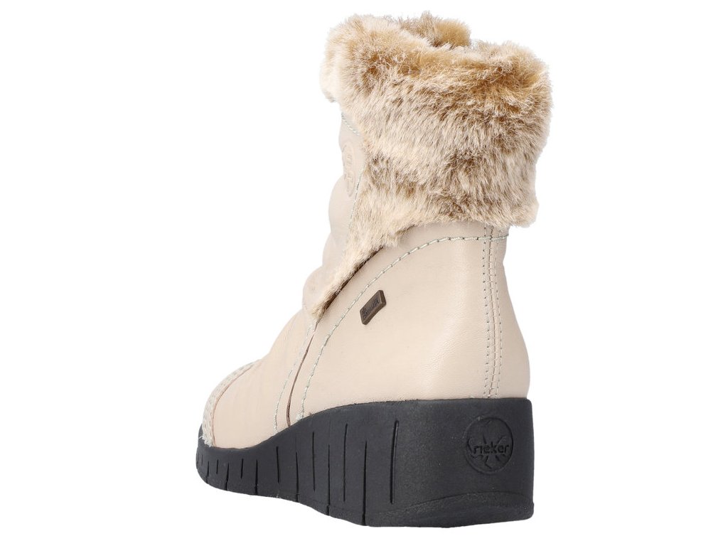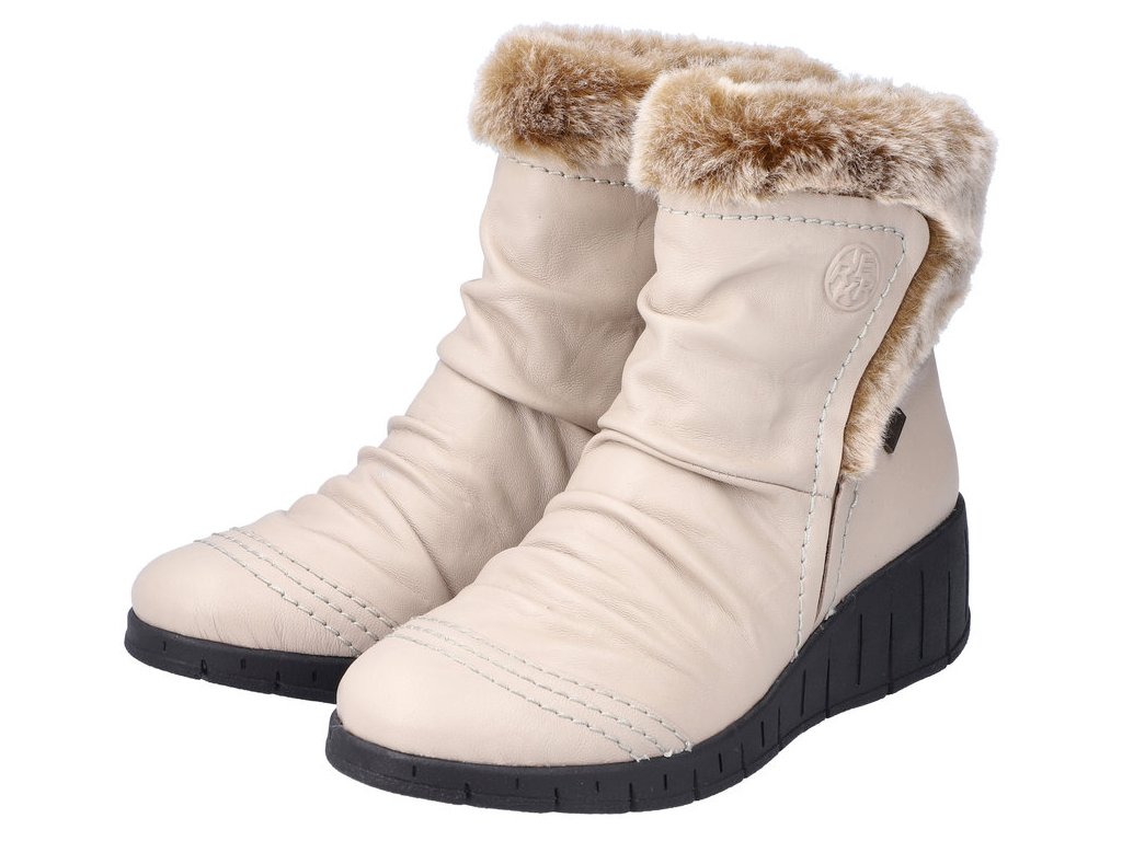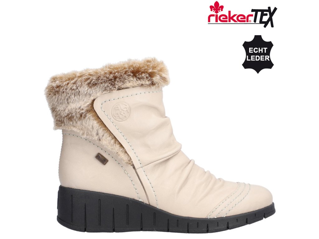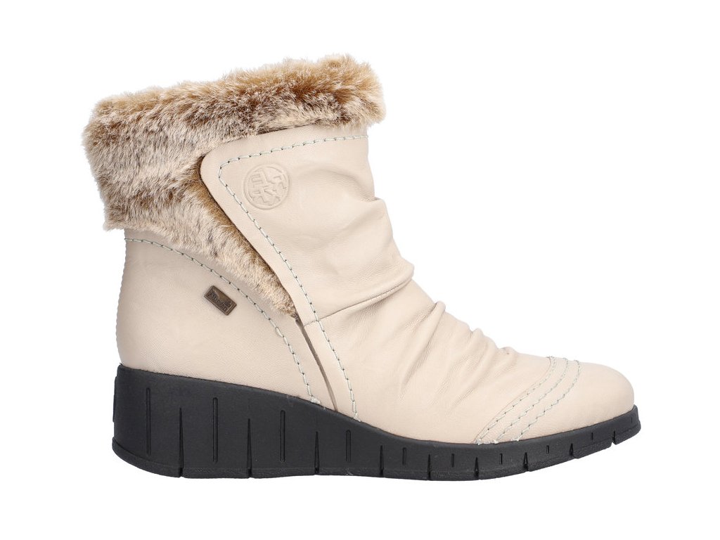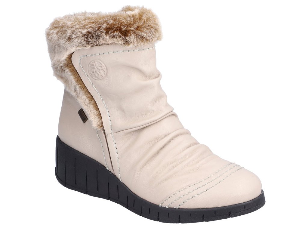 Dámská kožená kotníková obuv na klínku RIEKER-TEX Y1361-60 béžová