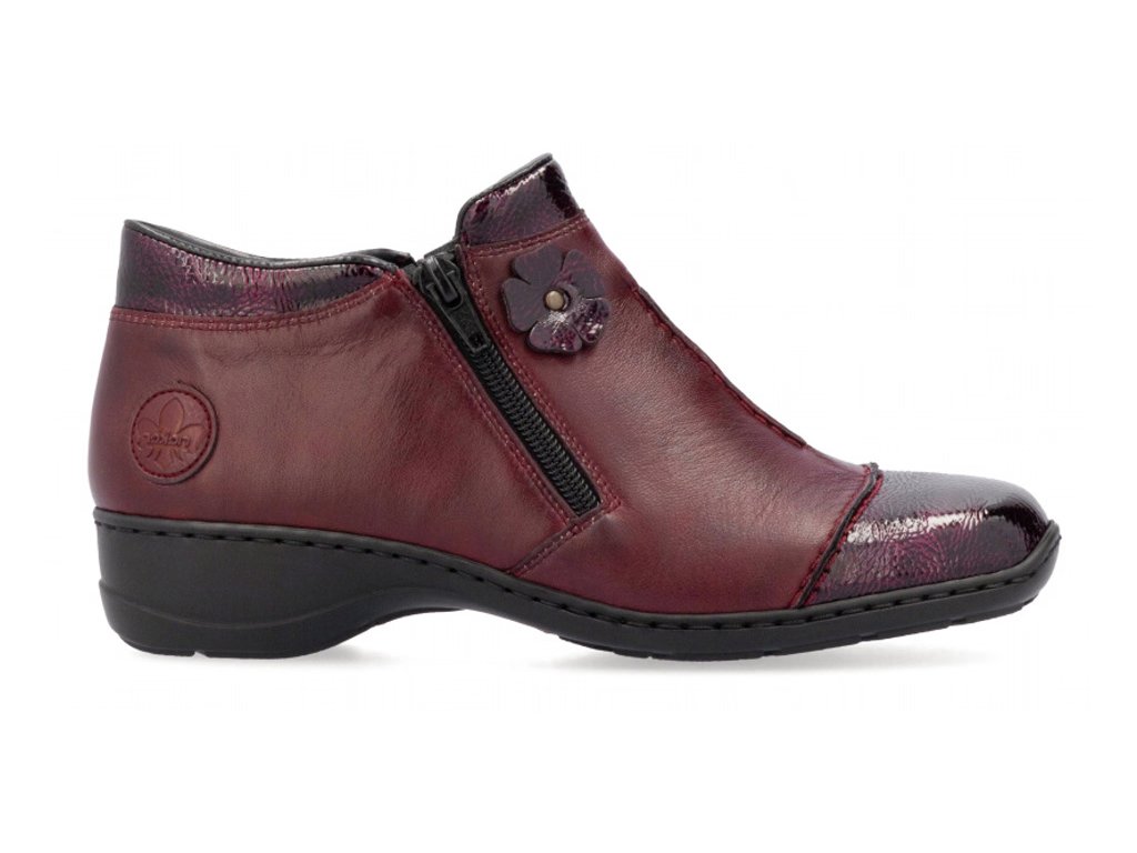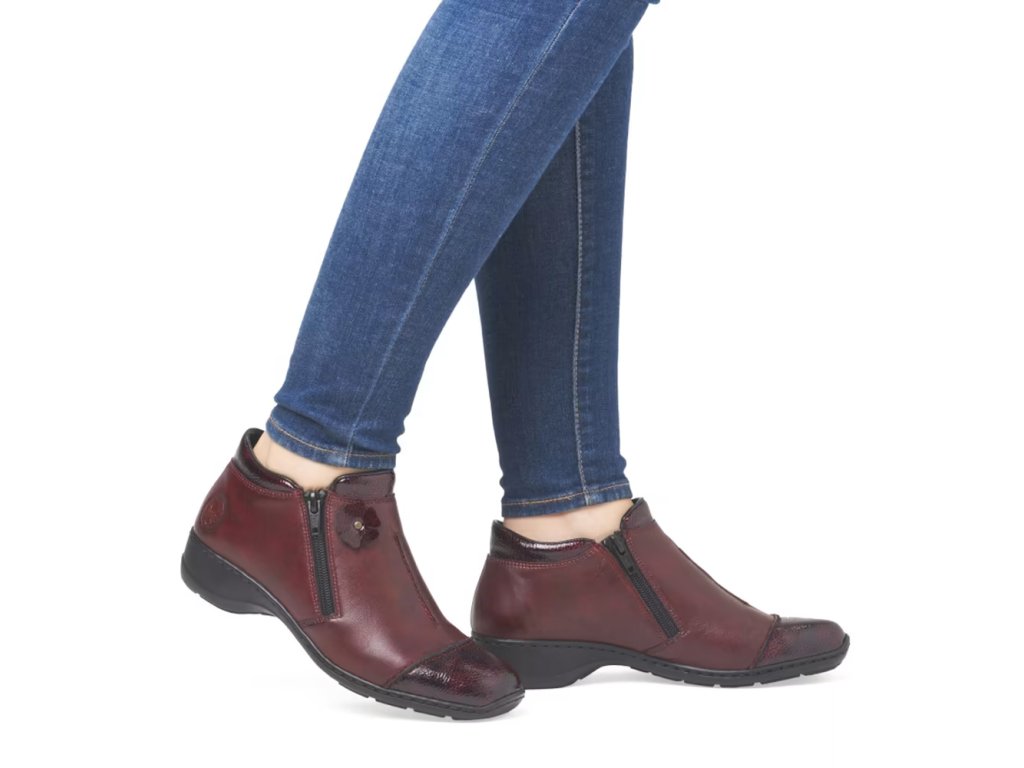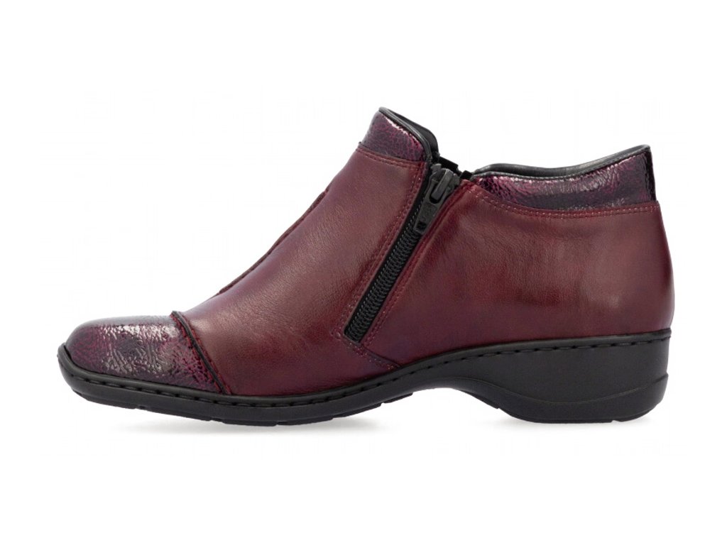 Dámská kožená kotníková obuv RIEKER 58388-36 vínová Dva Zipy