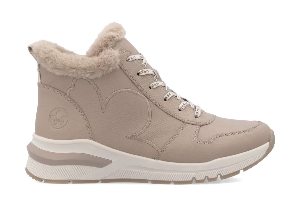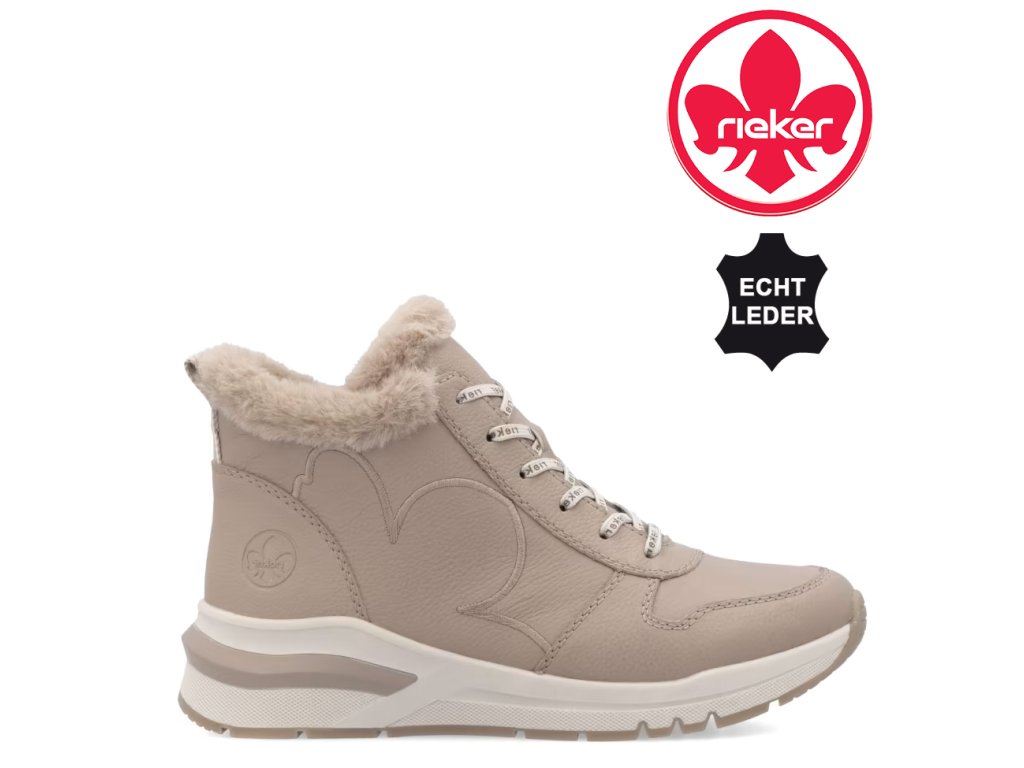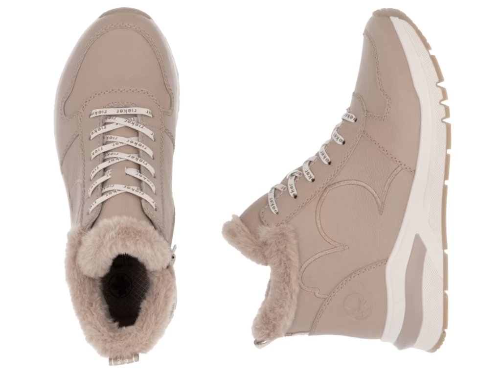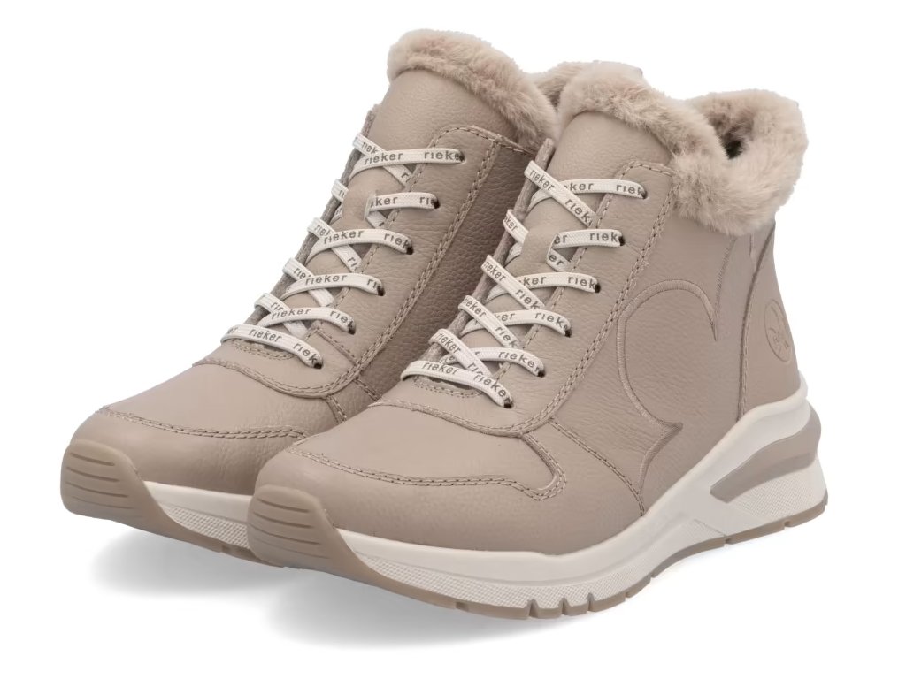Dámská kožená zimní kotníková obuv s kožíškem RIEKER M6606-20 béžová