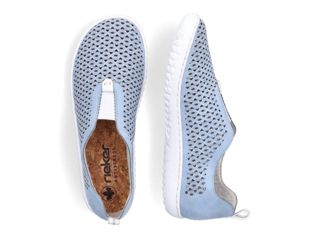 Dámské děrované mokasíny RIEKER 52866-10 modré 940467-55