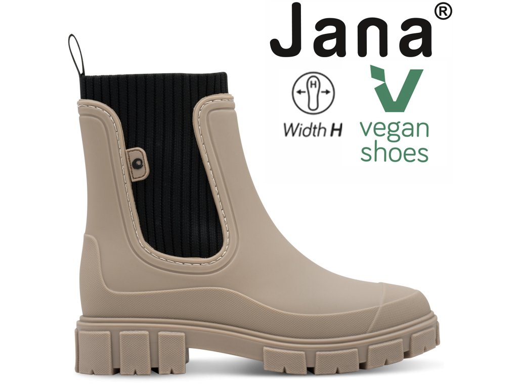 Dámské gumové kotníkové Chelsea boty JANA stélka šíře H 8-25481-45 341 béžové