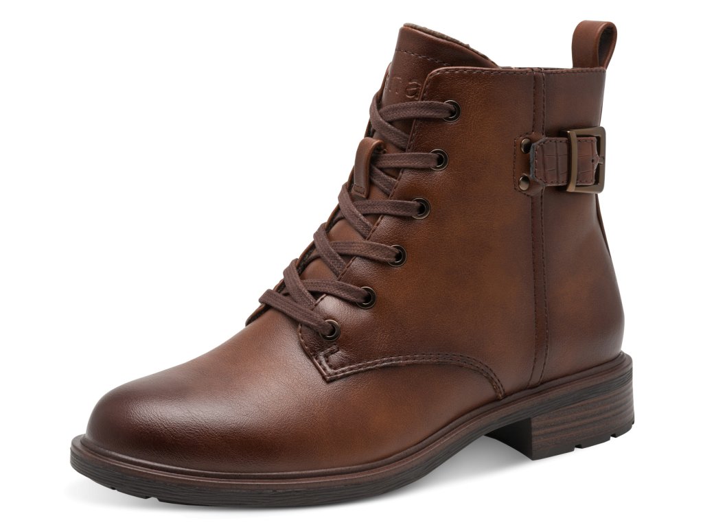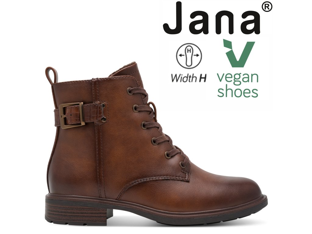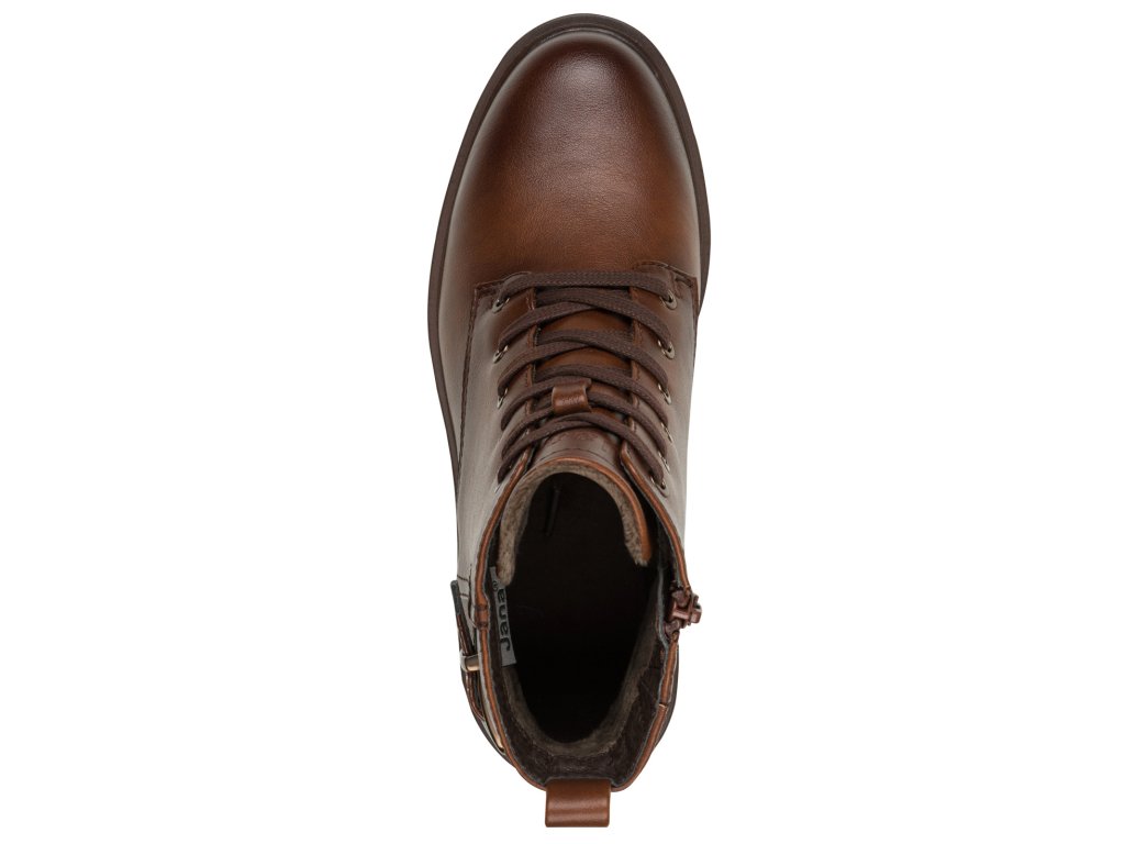 Dámské koňak šněrovací kotníkové boty JANA šíře H 8-25278-45 305 hnědé