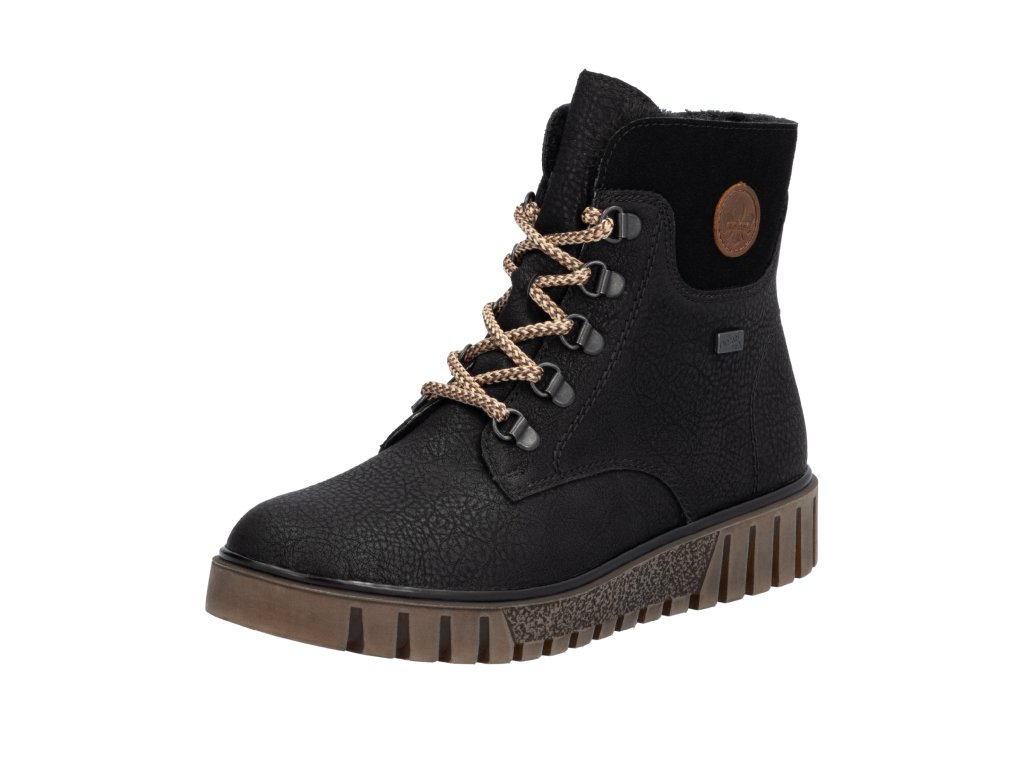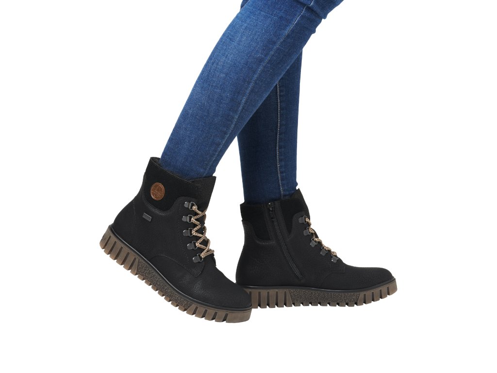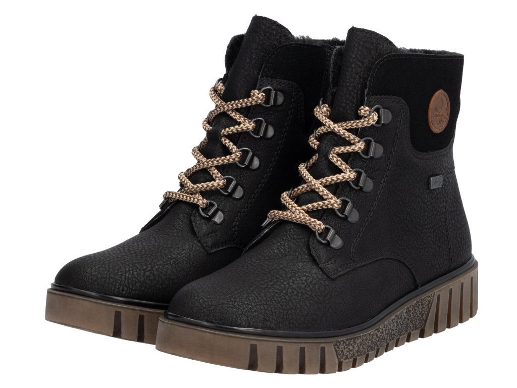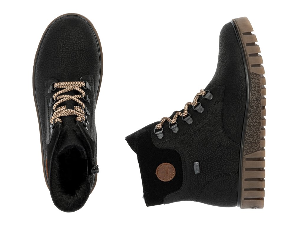 Dámské kotníkové boty na klínku s kožíškem RIEKER-TEX y3433-00 černé RO