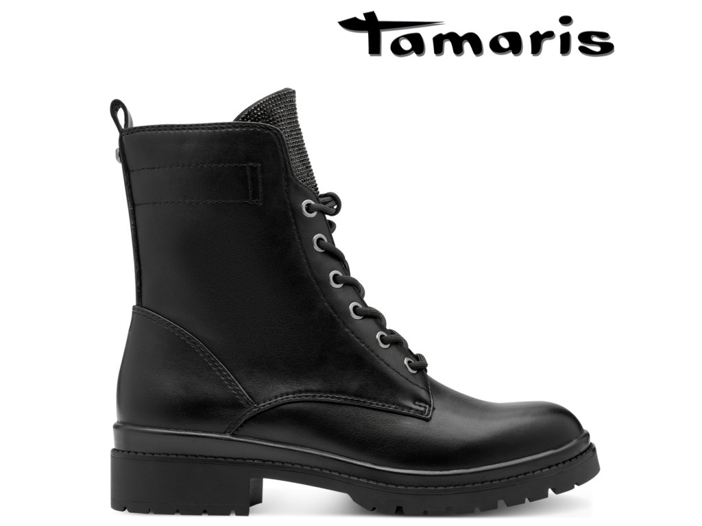Dámské kotníkové šněrovací kozačky farmářky TAMARIS 1-25263-43 043 černé