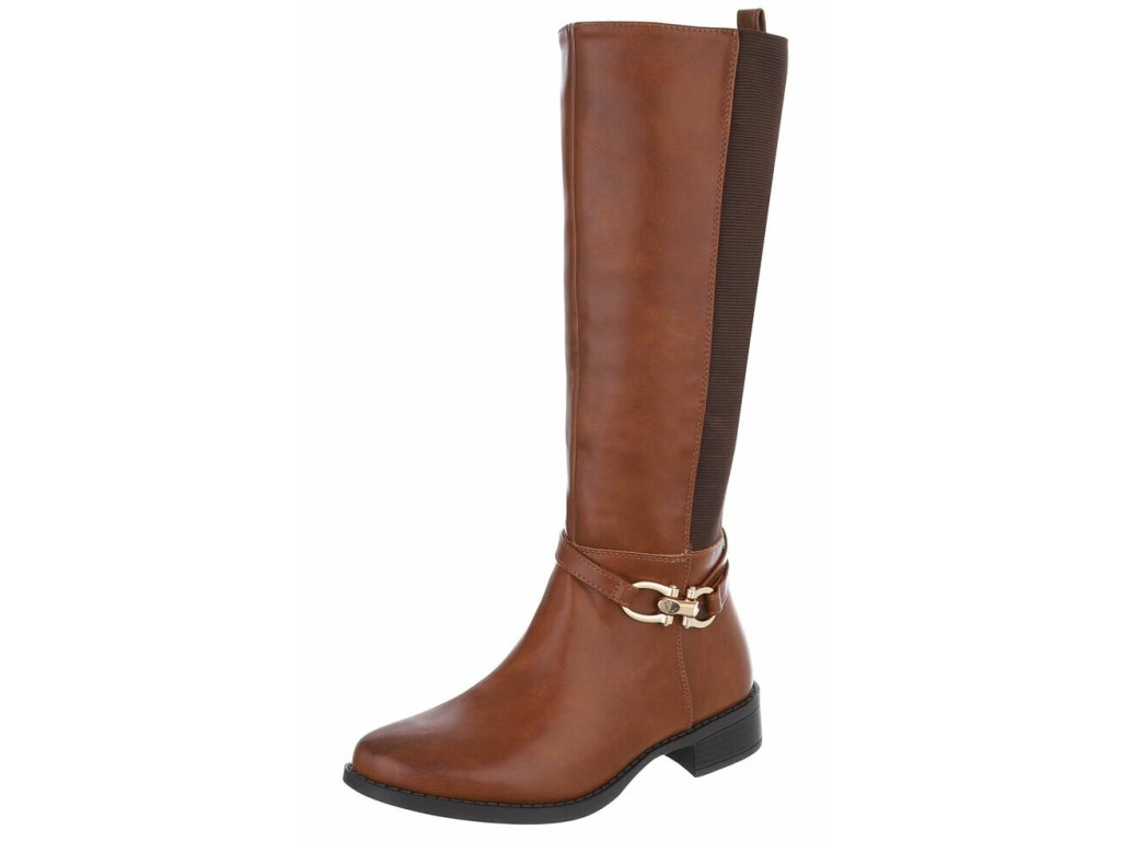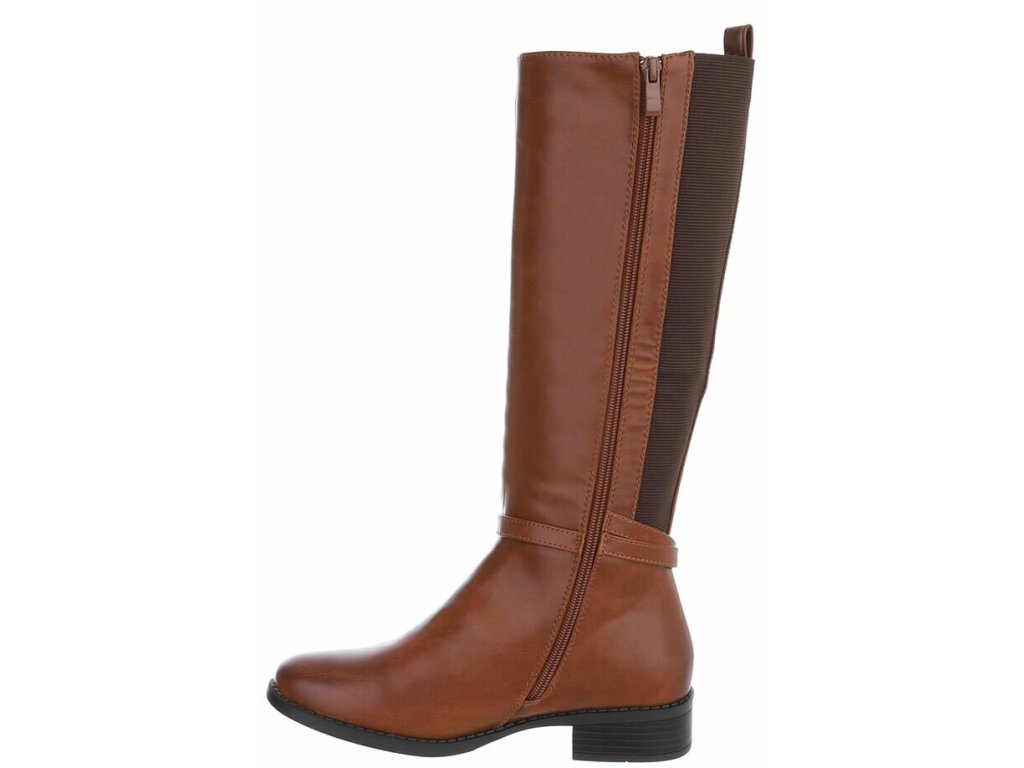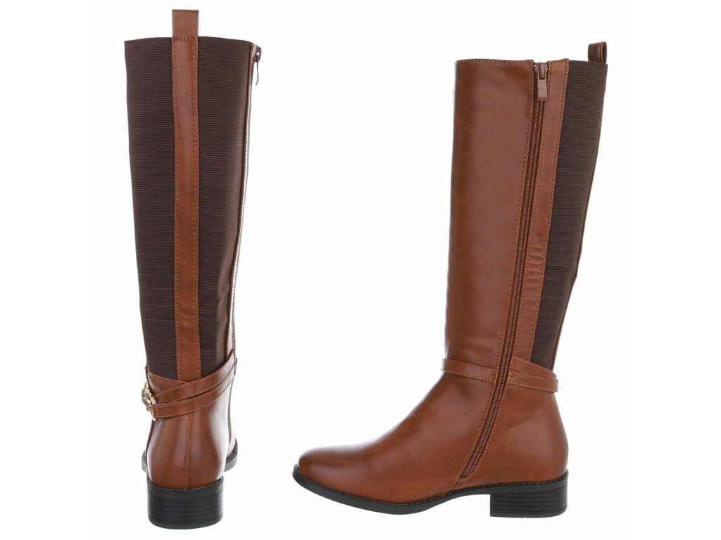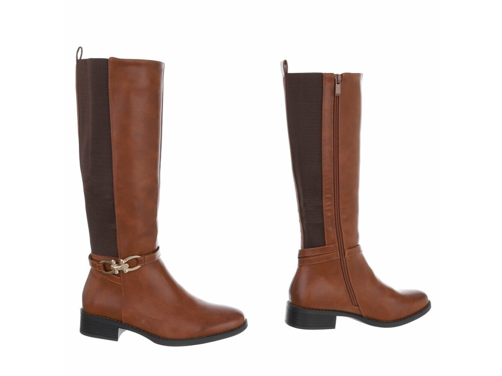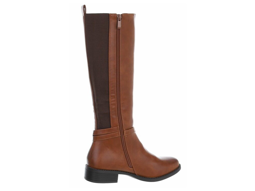 Dámské kozačky na podpatku s gumovou vsadkou SUPER MODE SP295 hnědé camel