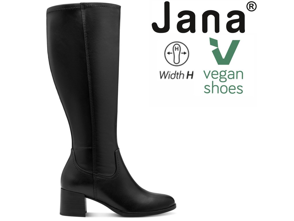 Dámské kozačky šíře H s gumovou vsadkou JANA 8-25567-45 001 černé