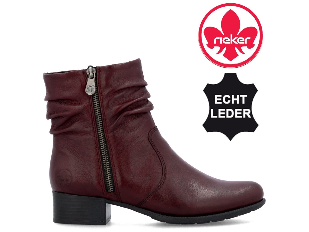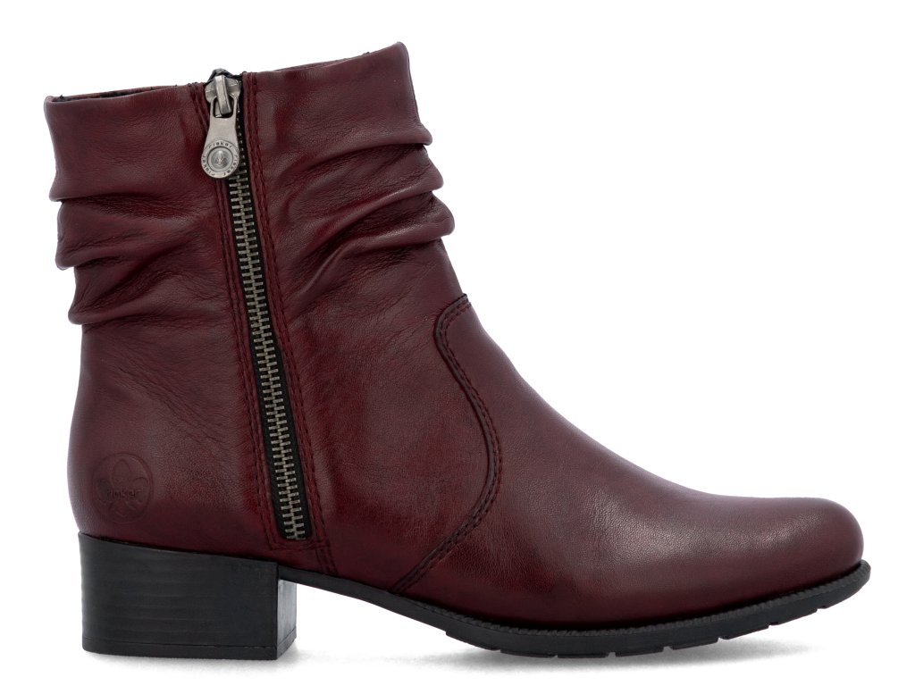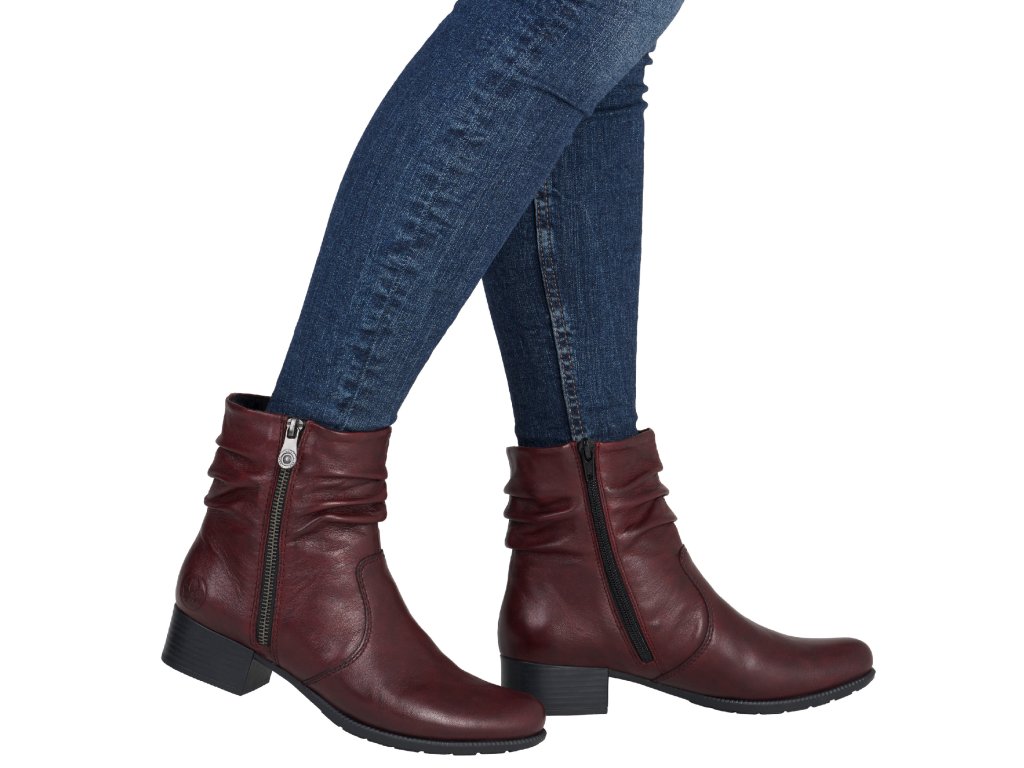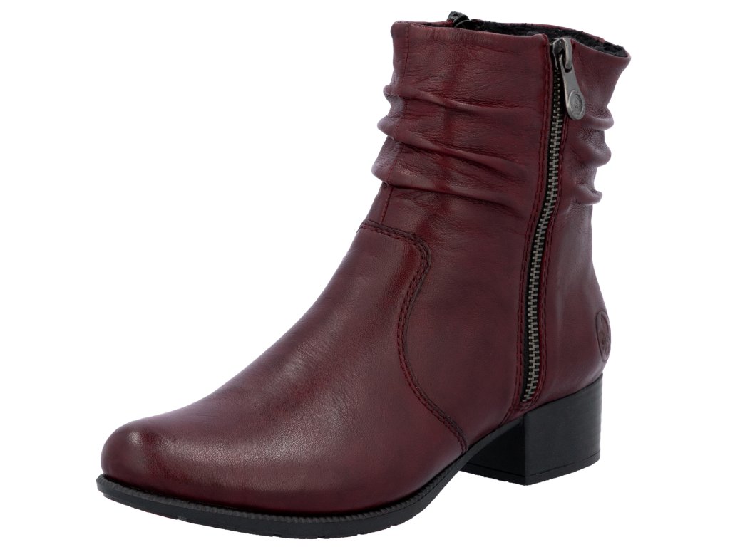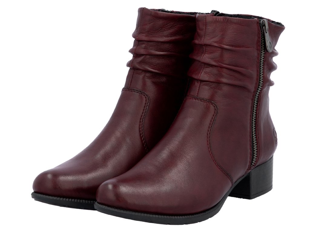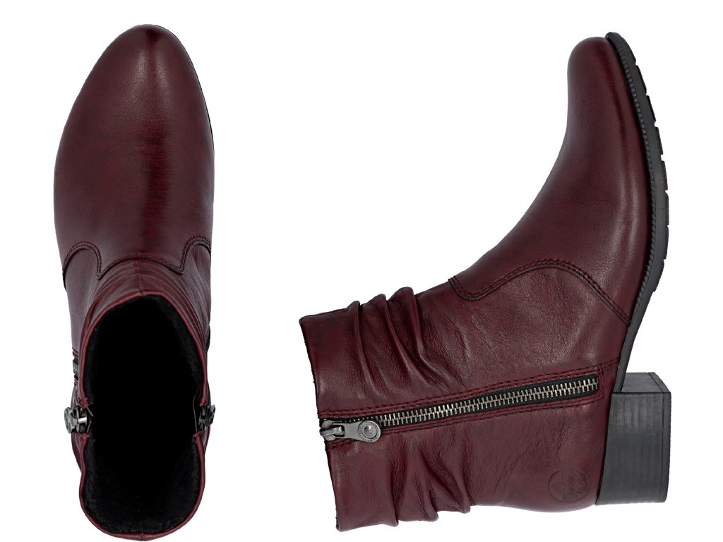 Dámské kožené kotníkové boty dva zipy RIEKER 78656-35 červené