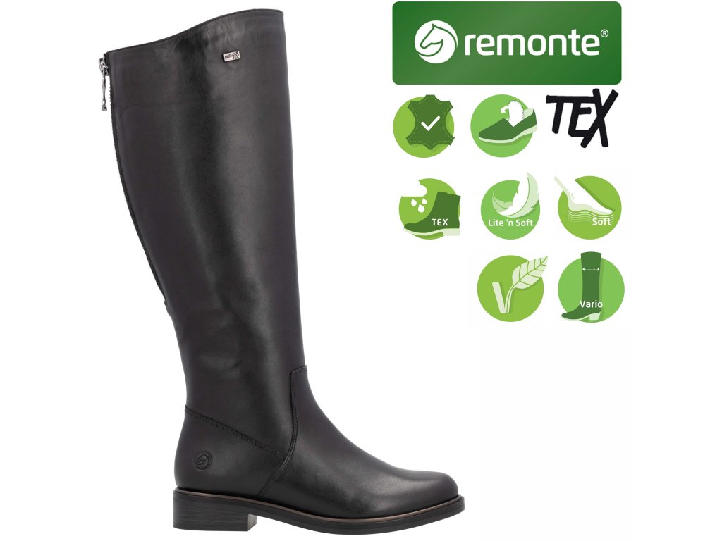 Dámské kožené kozačky Lýtko L - XL REMONTE Tex D8391-00 černé VÝPRODEJ 2.JAKOST