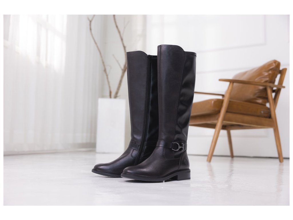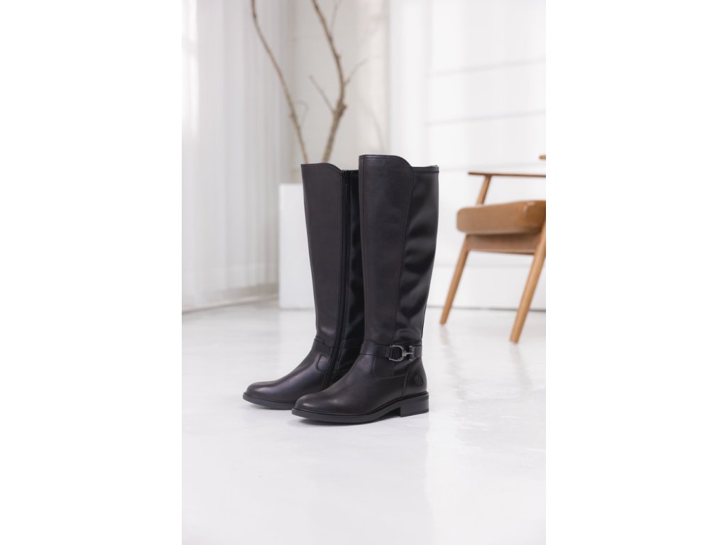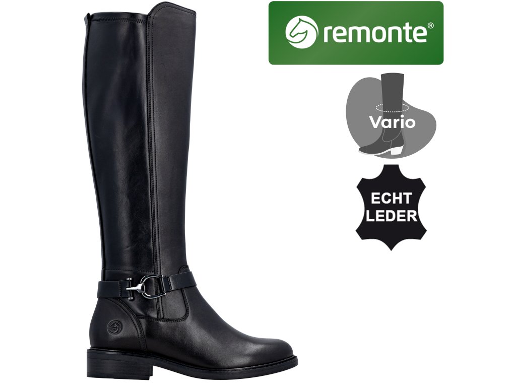 Dámské kožené kozačky lýtko s gumovou vsadkou REMONTE D2W77-00 černé