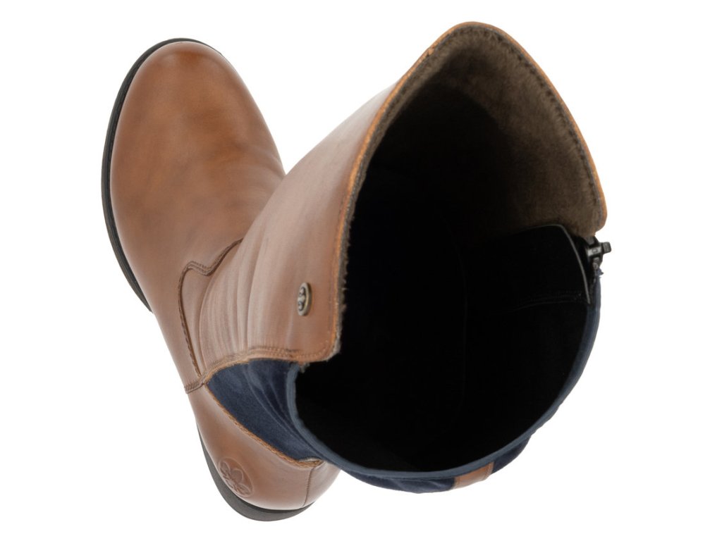 Dámské kožené kozačky na podpatku RIEKER Z9591-23 hnědá 2. jakost