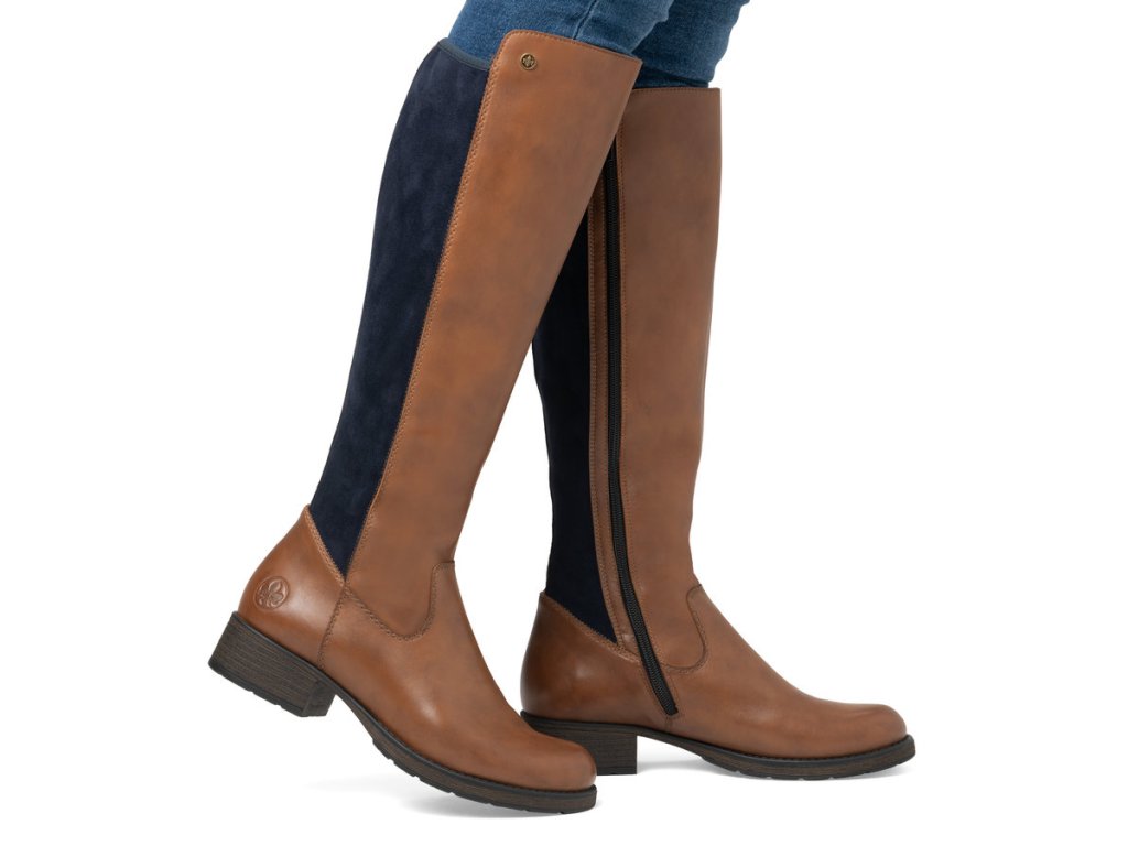 Dámské kožené kozačky na podpatku RIEKER Z9591-23 hnědá