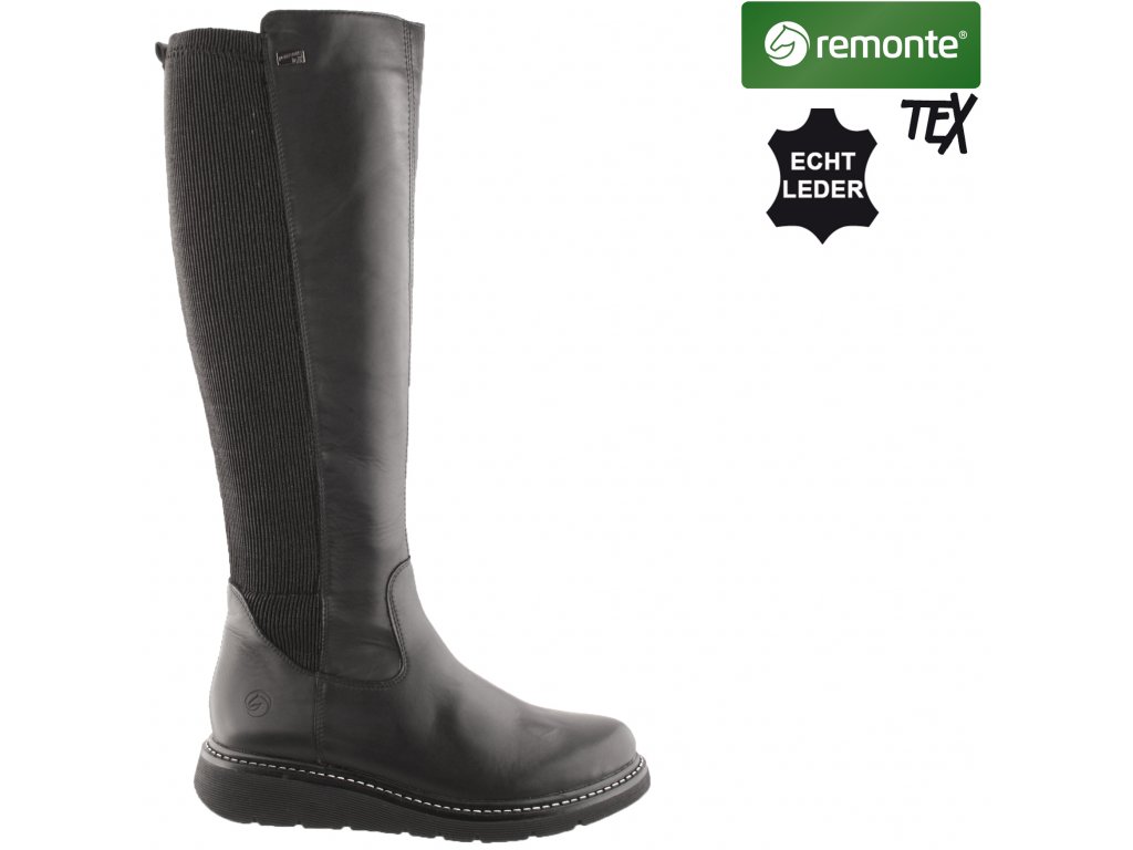Dámské kožené kozačky REMONTE Tex D3975-01 černé