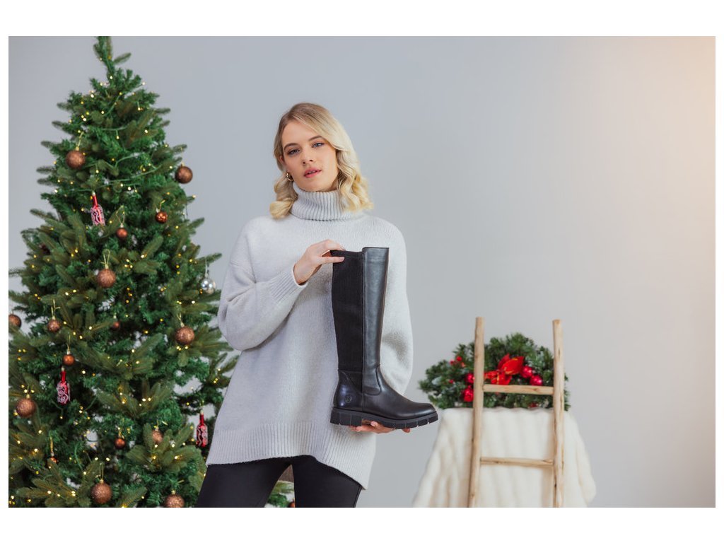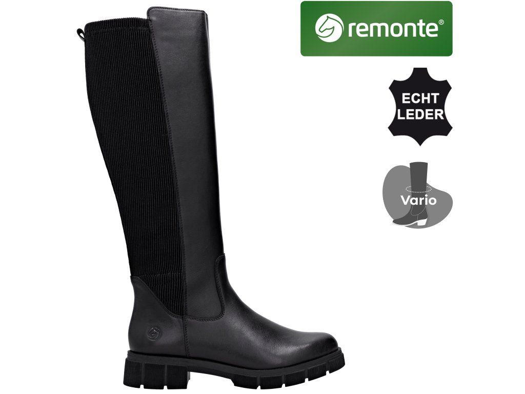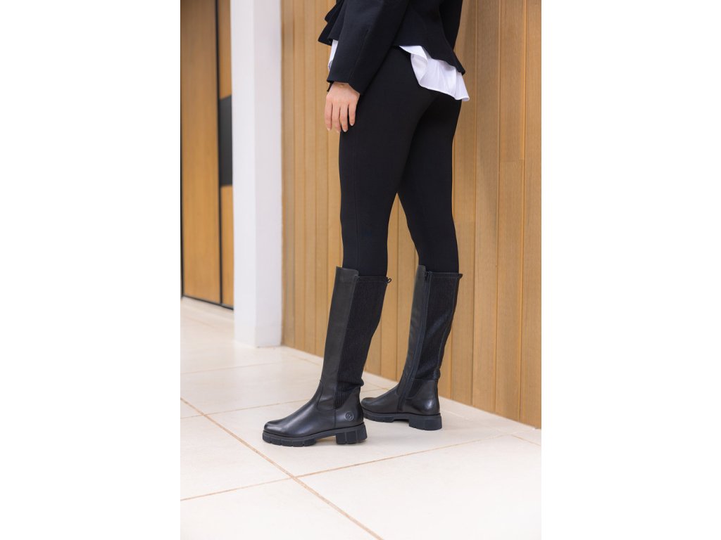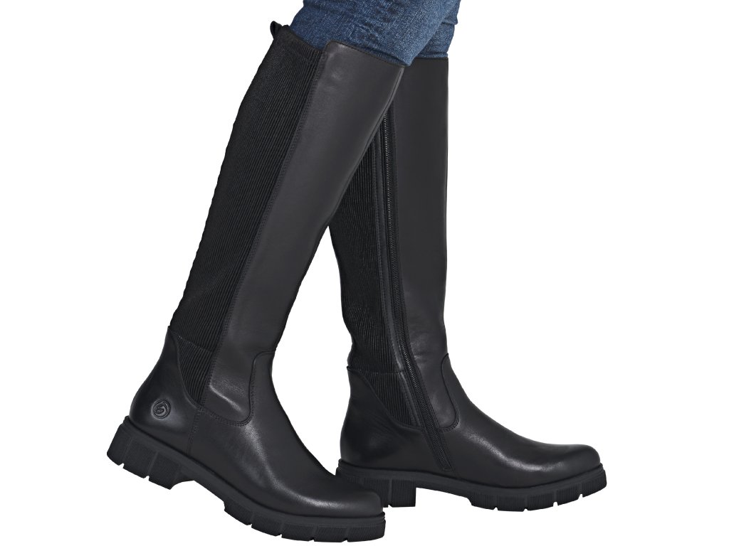 Dámské kožené kozačky s gumovou vsadkou REMONTE D2S74-00 černé