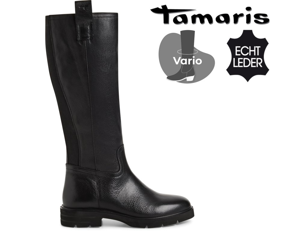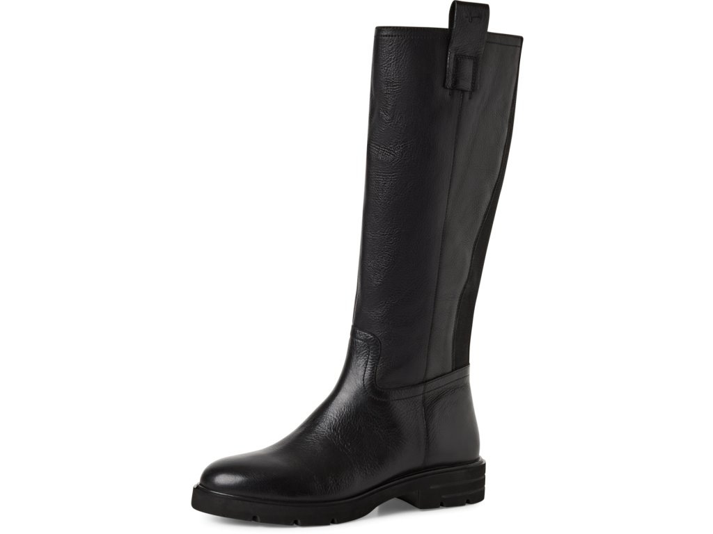 Dámské kožené kozačky s gumovou vsadkou TAMARIS 1-25616-45 001 černé