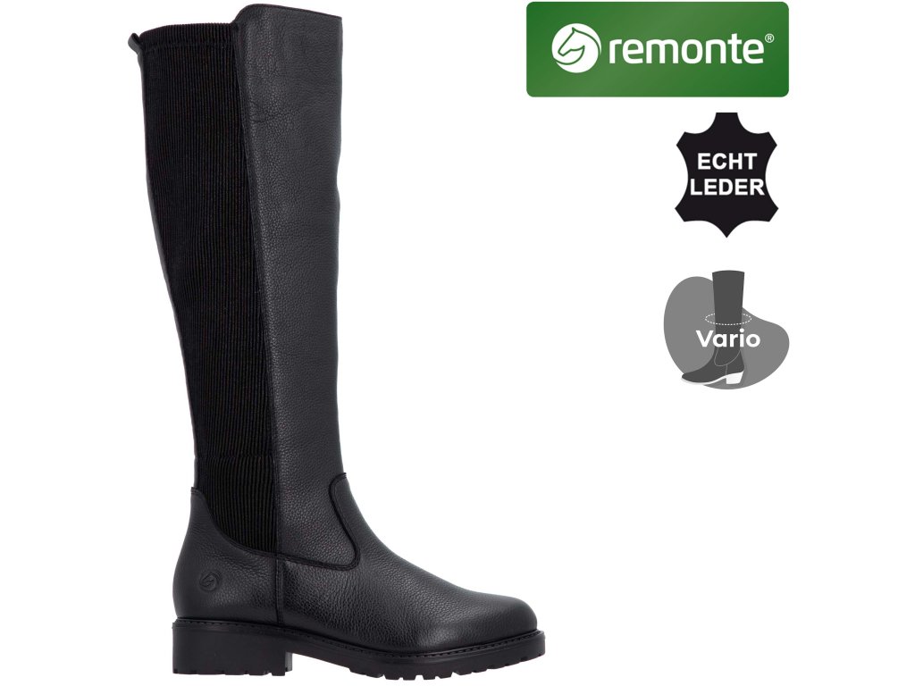 Dámské kožené kozačky Vario guma přes lýtko REMONTE R6594-01 černé