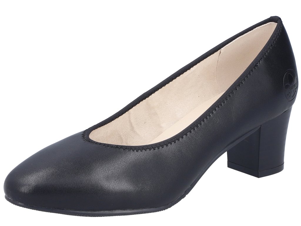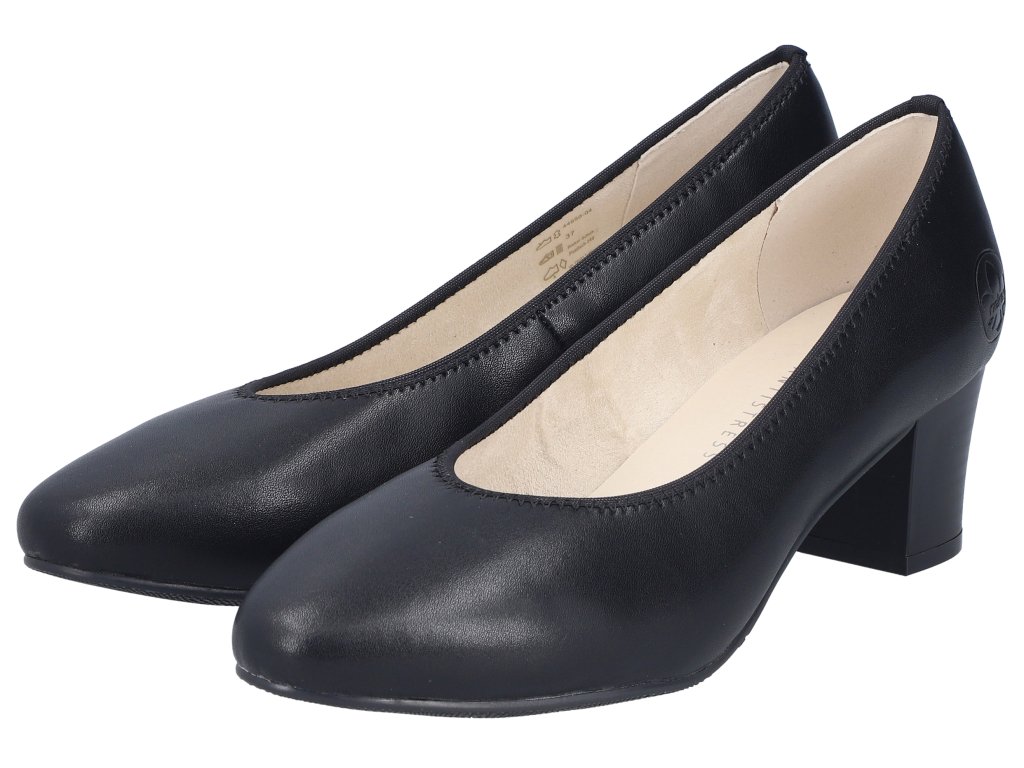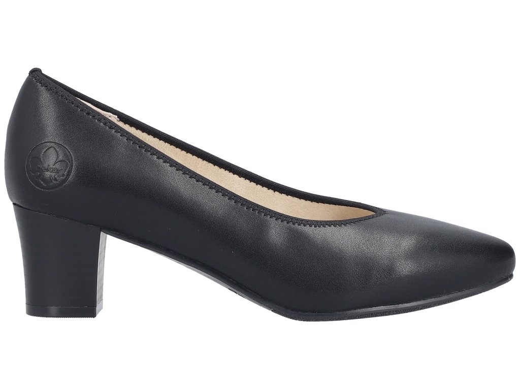 Dámské kožené lodičky na podpatku RIEKER 44650-04 černé