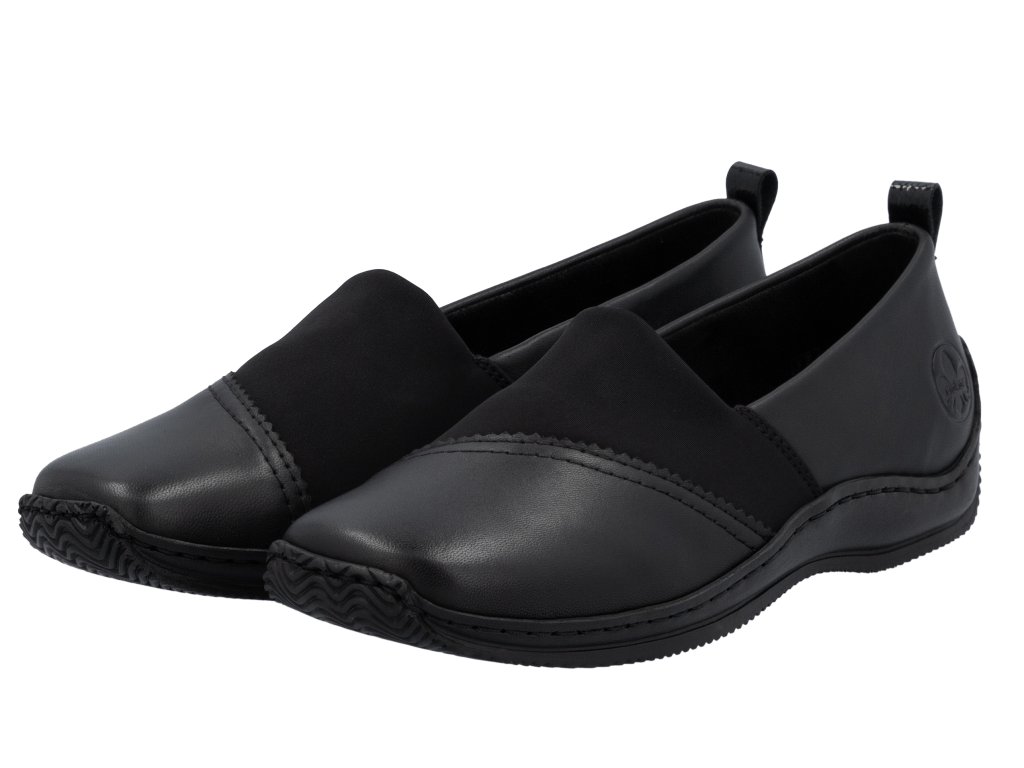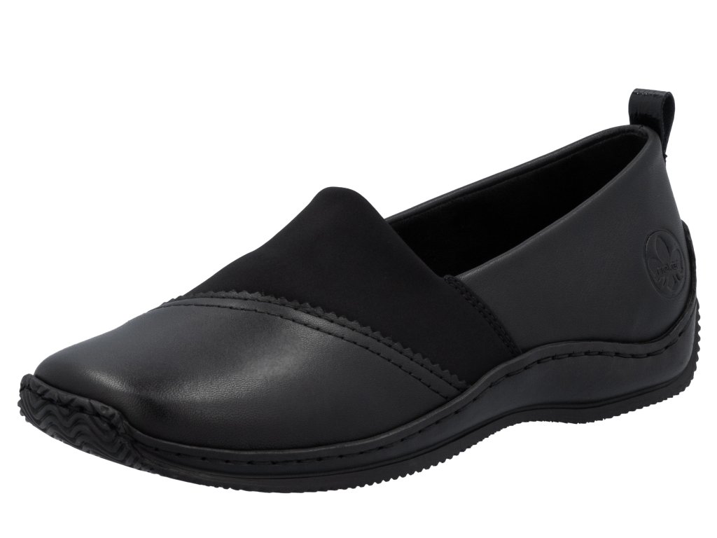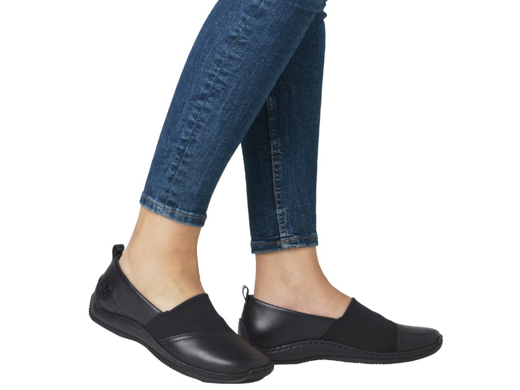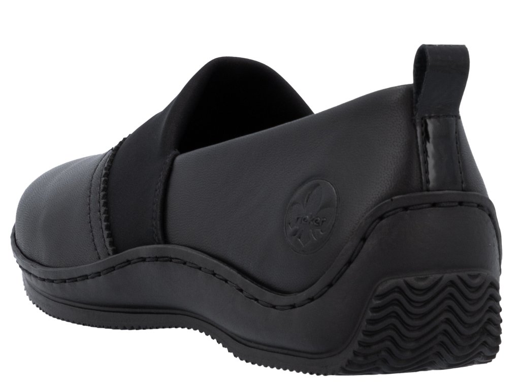 Dámské kožené mokasíny na klínku RIEKER L1790-00 černé