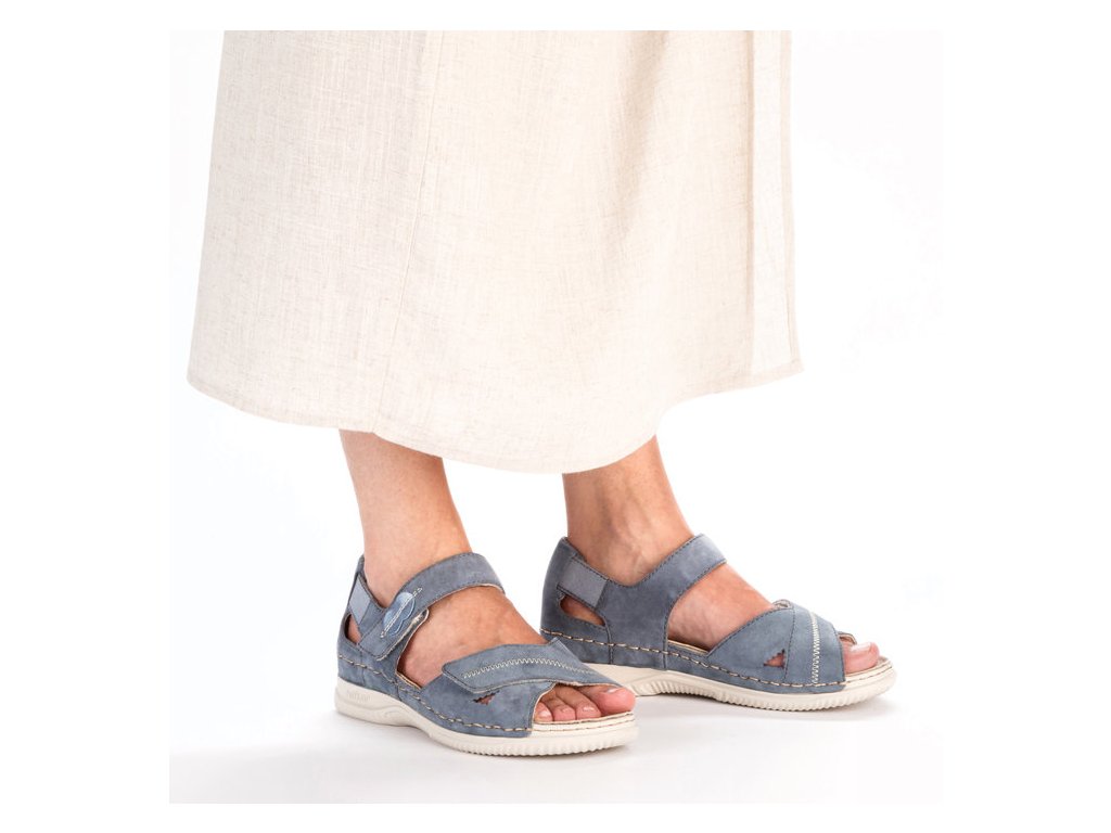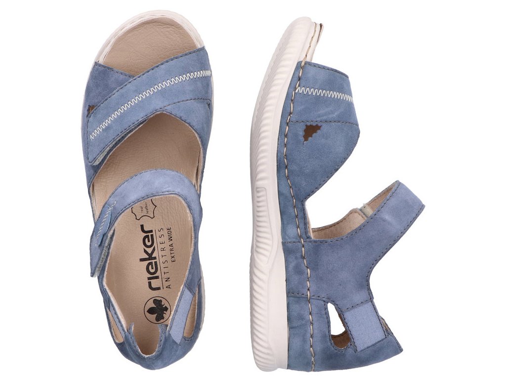 Dámské kožené sandály Extra Šíře H RIEKER V7474-10 modré