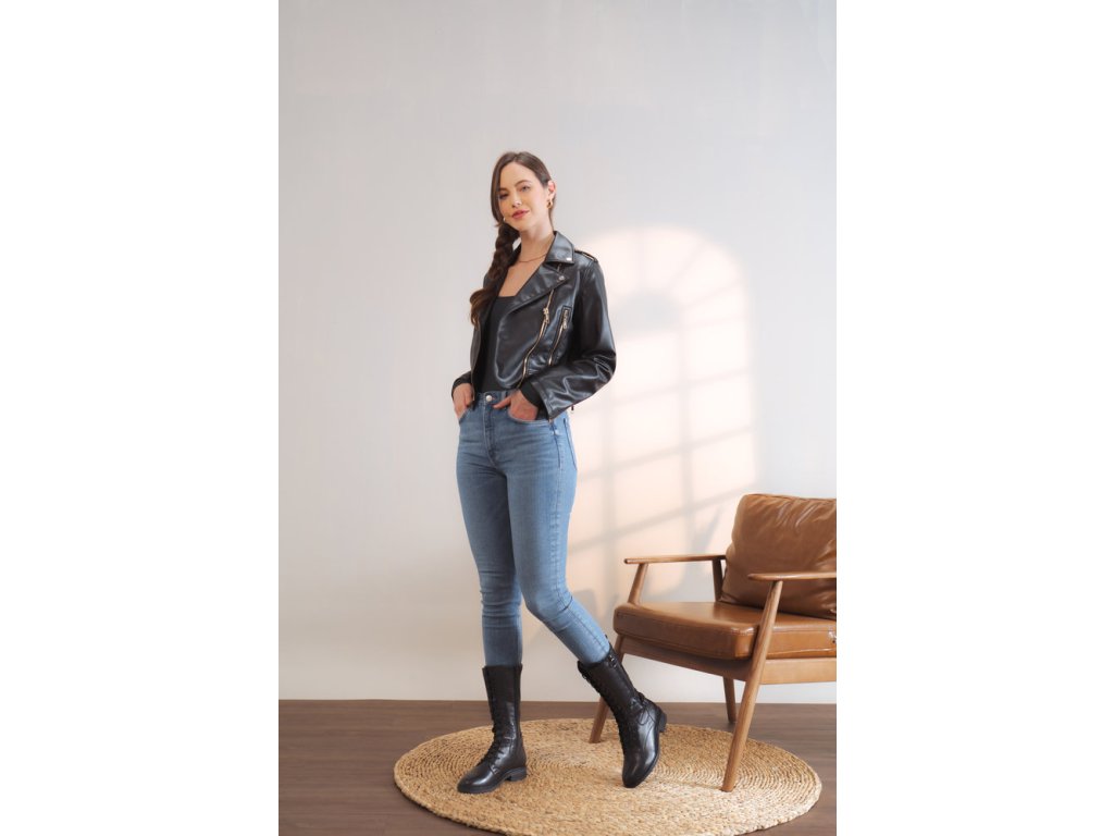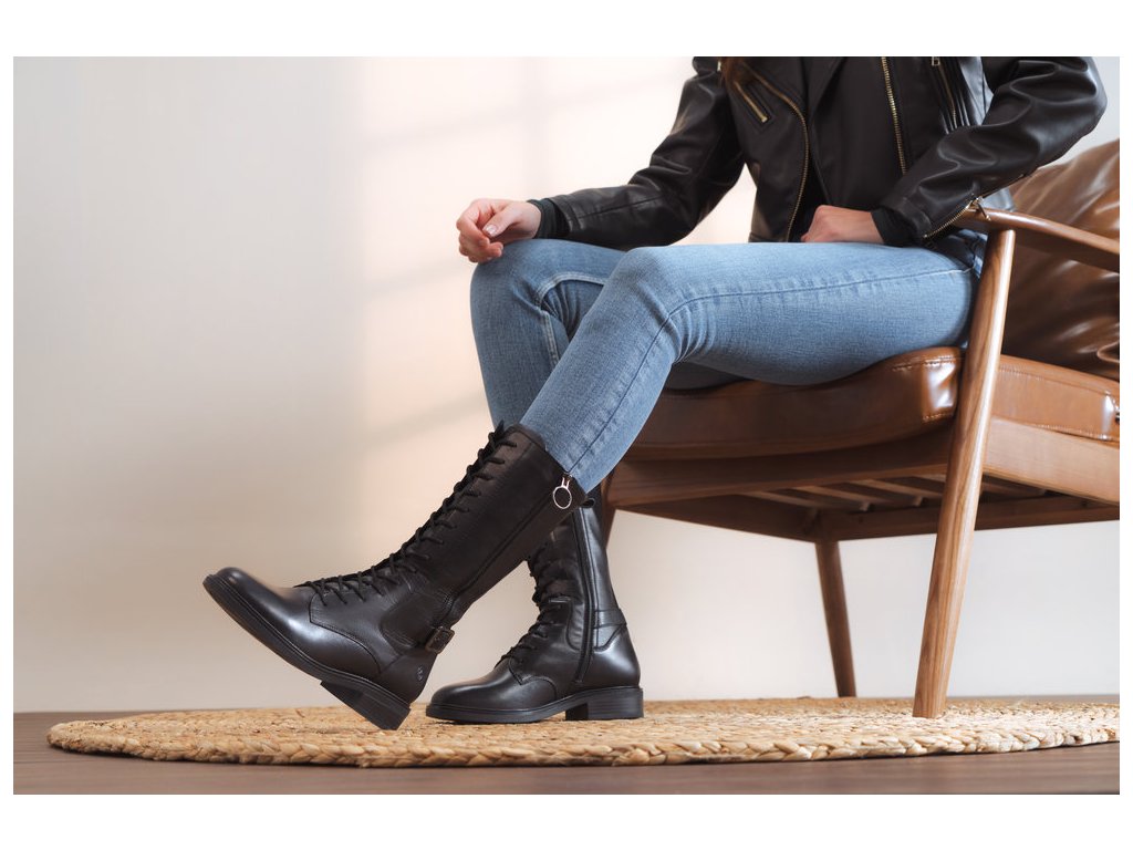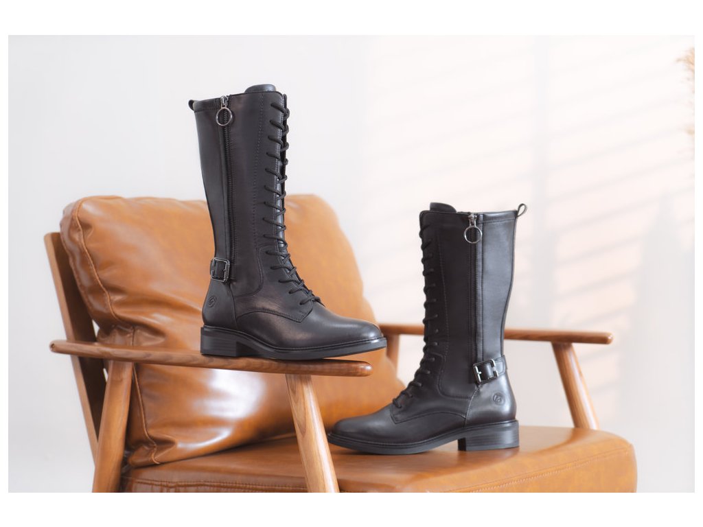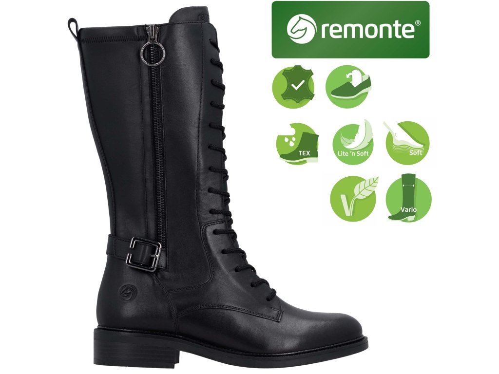 Dámské kožené šněrovací kozačky REMONTE D2W71-00 černé