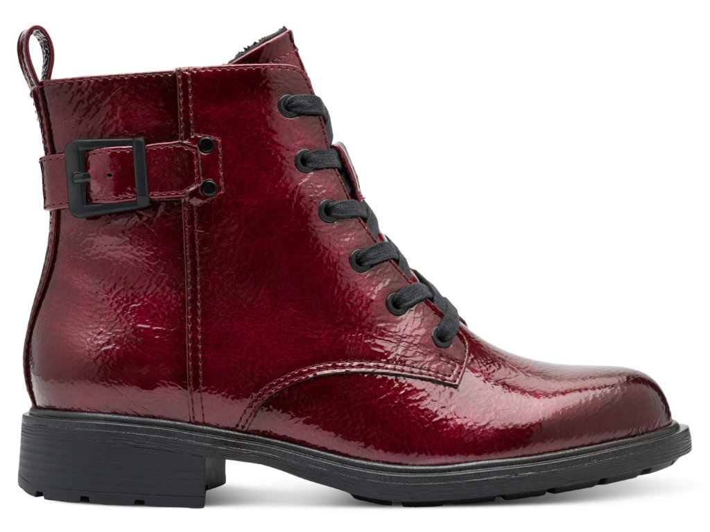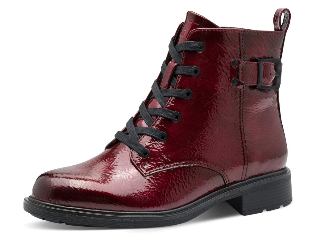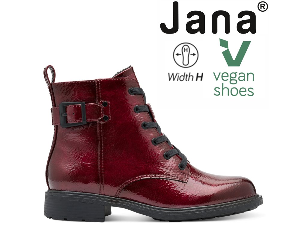 Dámské lakované šněrovací kotníkové boty JANA šíře H 8-25278-45 542 vínové