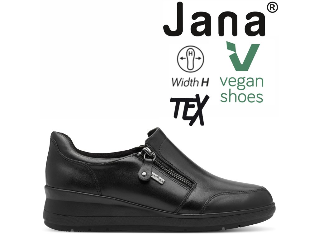 Dámské mokasíny dva zipy JANA stélka šíře H 8-24701-45 01 černé