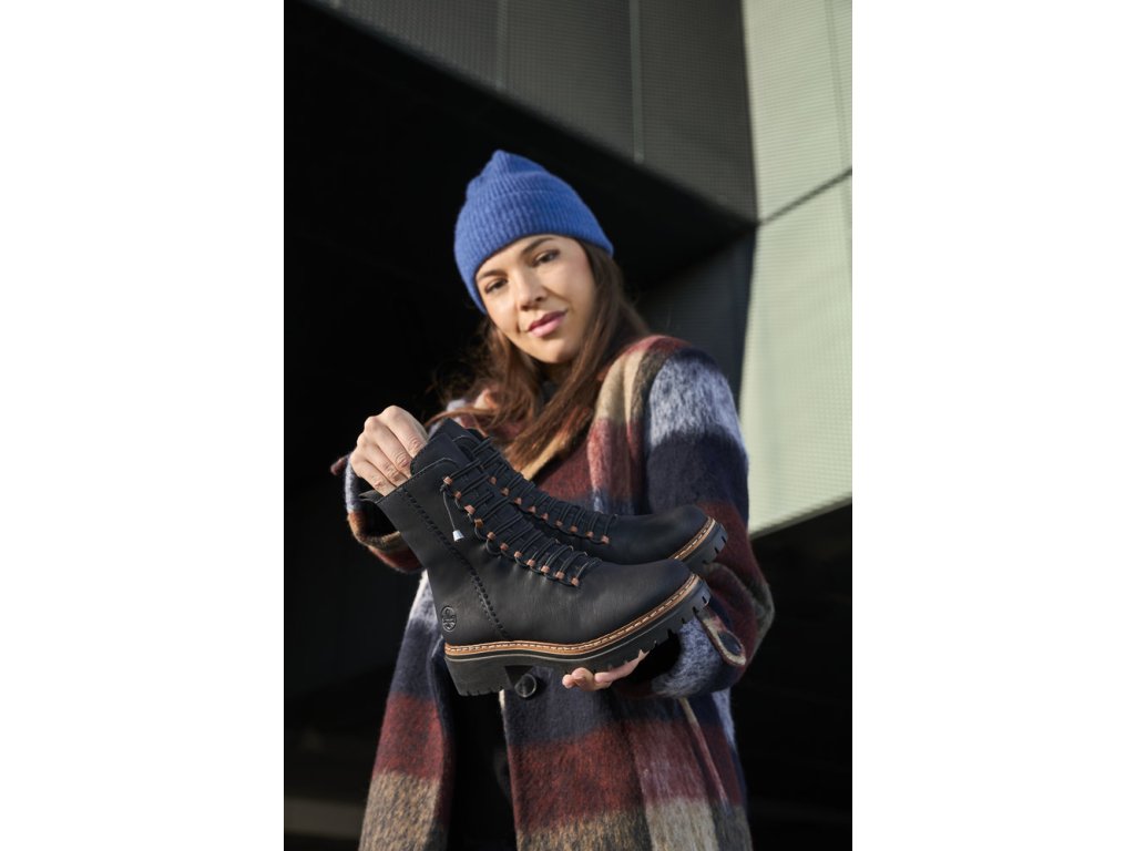 Dámské zimní kotníkové šněrovací boty farmářky RIEKER 72653-00 černé